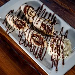 Rollitos de masa caseros con salsa de kit kat & azúcar de vainilla.