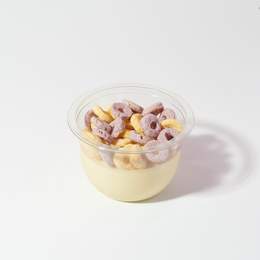Panacota de fruta de la pasión con cheerios de colores