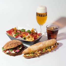 Dos bocatas, side y dos bebidas.