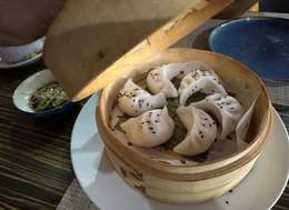 Masa de trigo rellena de pasta de pollo, col china, jengibre y cebolla china