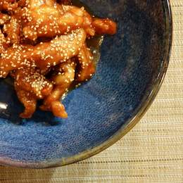 Chicharrón de pollo con salsa original de tamarindo, con arroz jazmín