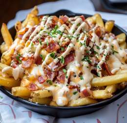 Patatas Fritas con queso gratinado y bacon