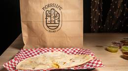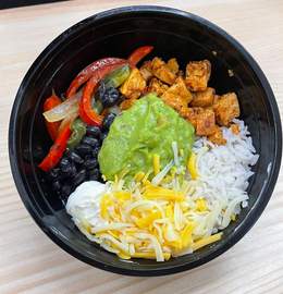 Crujientes trozos de tortilla de maíz, frijoles, salsa de queso cheddar, pico de gallo, guacamole y crema agria
