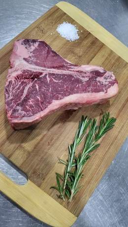 Estupendo Tbone (1.1 kg.) aprox. con patatas y pimiento de padrón y sobre plato caliente