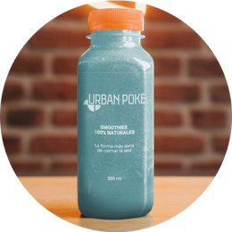 Plátano, Mango, Melocotón, Piña, Leche de coco y Espirulina azul. Electrizante.
