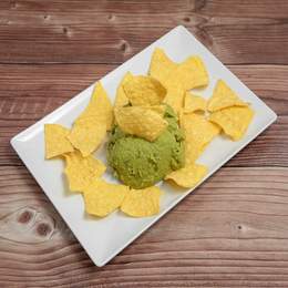 Ración de guacamole acompañada de cilantro fresco y totopos