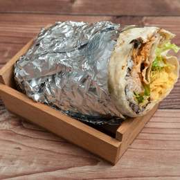 Tortilla grande de trigo que envuelve un delicioso guiso de carne de ternera,pollo,carnitas o cochinita pibil, frijoles negros, lechuga, tomate, guindillas, maíz, totopos, queso y opcionalmente guacamole