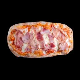 Salsa de tomate, mozzarella 100%, jamón cocido artesanal de Camprodon, orégano y aceite de albahaca.