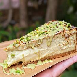 Pinsa grande de Nutella, ricotta y trencadís de pistachos