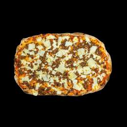 Salsa boloñesa, mozzarella 100%, carne boloñesa, escamas de parmesano y orégano.