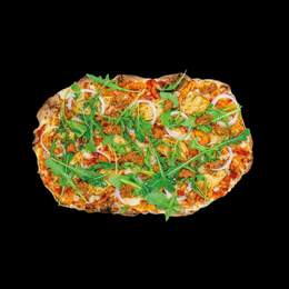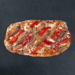 Salsa de tomate, mozzarella 100%, escalivada depimiento y berenjena, atún.