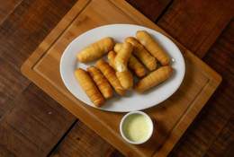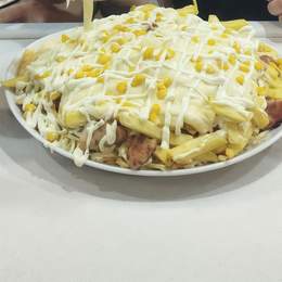 Patatas fritas 200gr,salchicha frankfurt,chorizo,lechuga,queso latino,queso mozarella,patatas paja,salsa tartara,salsa piña