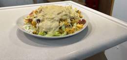 Pollo 200gr,Maiz 100gr,queso mozarela 100gr,papa chongo 30gr