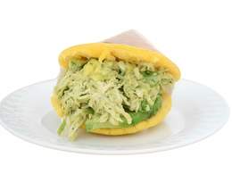 Arepa rrellena con un generoso revuelto de huevo fresco mezclado con tomate,cebolla y pimientos