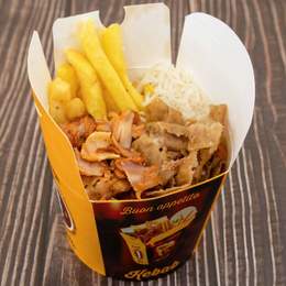 Carne de kebab de pollo, ternera o mixta, patatas, queso y salsas especiales.