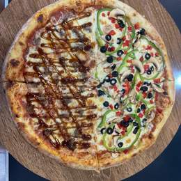 Pizza de masa fresca. Tamaño 30 cm. Si eliges Pizza Kebab o Pizza BBQ, la pizza se cocinará con Carne Mixta.