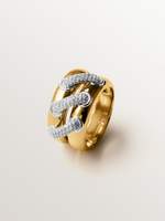 Anillo doble de plata 925 bañada en rodio y oro amarillo de 18K con pavé de topacios blancos - Talla 13