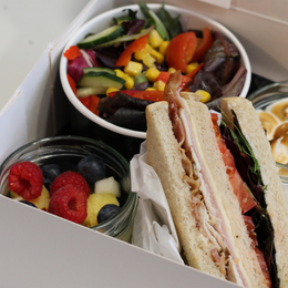 Sandwich Club tostado de pollo, bacon, espinacas y tomate (12 unidades)
