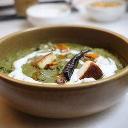 GUISO DE ESPINACAS CON COMINO, CILANTRO Y QUESO PANEER CASERO.