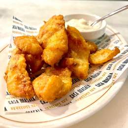 PESCADO MARINADO CON LIMA Y JENGIBRE REBOZADO EN HARINA DE CON SALSA TÁRTARA CASERA (6u)