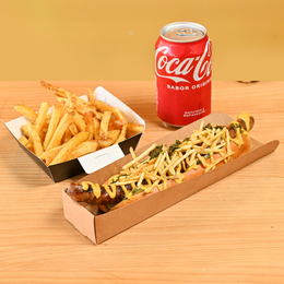 Nuestro delicioso Pancho 100% DUROC acompañado de Fritas Caseras.