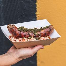 Choripan - Chorizo Criollo 100% Duroc, chimichurri y salsita criolla - con patatas fritas caseras