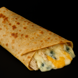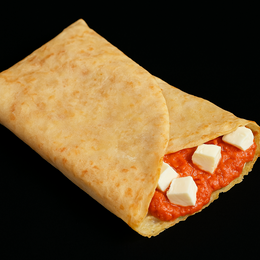 Crep artesana de harina de trigo y maíz, rellena con una mezcla intensa y cremosa de quesos: azul, edam, gouda, cheddar y madurado de vaca.