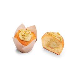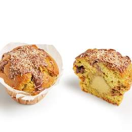 El Muffin Dubai Style es un esponjoso muffin relleno con crema de pistacho, recubierto de bombón y coronado con pasta kataifi.