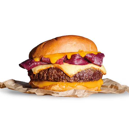Carne 100% de Angus, queso cheddar madurado con bacon de Angus, rúcula y salsa Cumberland en pan estilo brioche.
