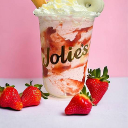 Batido artesanal de fresa con base de helado de vainilla y fresas de verdad.