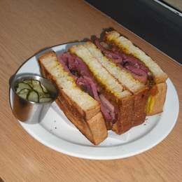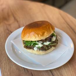 Pastrami de Wagyu Ibérico 120 g con cebolla caramelizada y mostaza