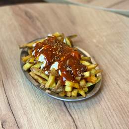 Patatas caseras fritas y con mayonesa japonesa, salsa brava de la casa , chilli oil y sichimi