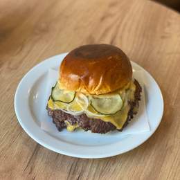 Hamburguesa de wagyu ibérico , queso cheddar, cebolla, pepinillos caseros y salsa especial