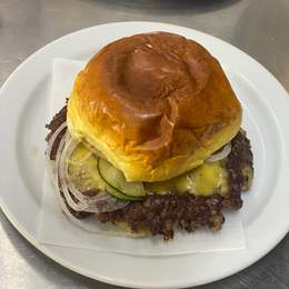 Hamburguesa de wagyu ibérico , queso cheddar, cebolla , pepinillos encurtidos caseros y salsa especial