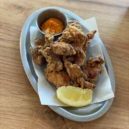 Pollo tradicional frito japonés con mayonesa y sichimi togarashi