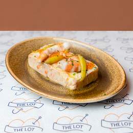 Salmón marinado The Lot, con cogollos, escalonia frita, crema agria y chutney de mango