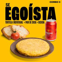 Tortilla jugosa de patata clásica en formato para compartir entre 2 pax.