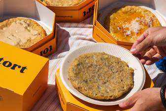 Tortilla jugosa de patata y cebolla caramelizada en formato burger