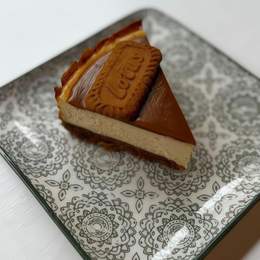 Cremoso y delicado cheesecake elaborado con la inconfundible galleta Lotus, con notas especiadas de caramelo y canela, coronado con una suave cobertura que lo convierte en un postre irresistible.