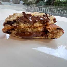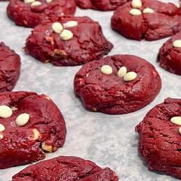 Suave, esponjosa y con el característico sabor a cacao de Red Velvet, rellena de crema irresistible que se derrite en cada mordida. Una cookie gigante que convierte cualquier antojo en un momento inolvidable.