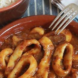 Calamares cocidos en una rica y suculenta salsa, ideal para los amantes de los mariscos