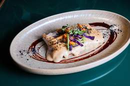 con cremoso de boniato y patatas trufadas.