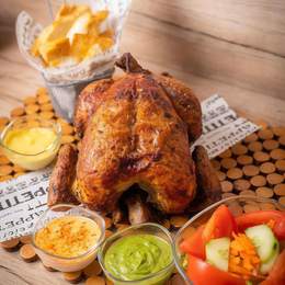1 pollo entero con patatas fritas y ensalada + 3 cremas