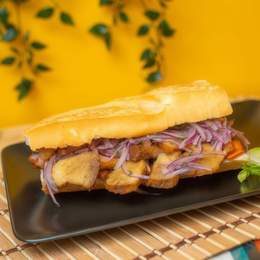 Pan con Chicharrón de Cerdo y Cebolla Morada