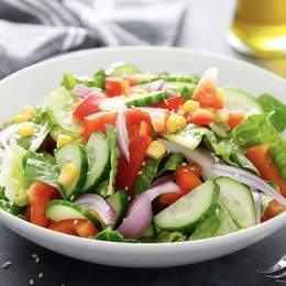 Filete de cerdo apanado, arroz, ensalada tropical, patatas fritas y refresco