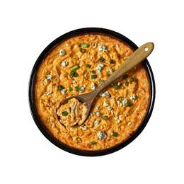 Dip de pollo con queso creama y salsa búfalo picante al horno con nachos