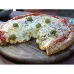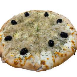 Salsa de tomate, mozzarella, provolone y olivas negras