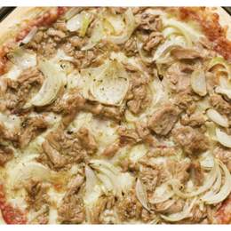 Salsa tomate, mozarella, atún, cebolla y orégano