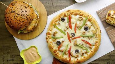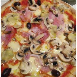 Salsa tomate, mozarella, chapiñones, jamón york, corazones de alcachofas y orégano