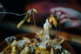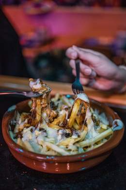 PATATAS FRITAS CON MOZARELLA Y COCHINITA PIBIL